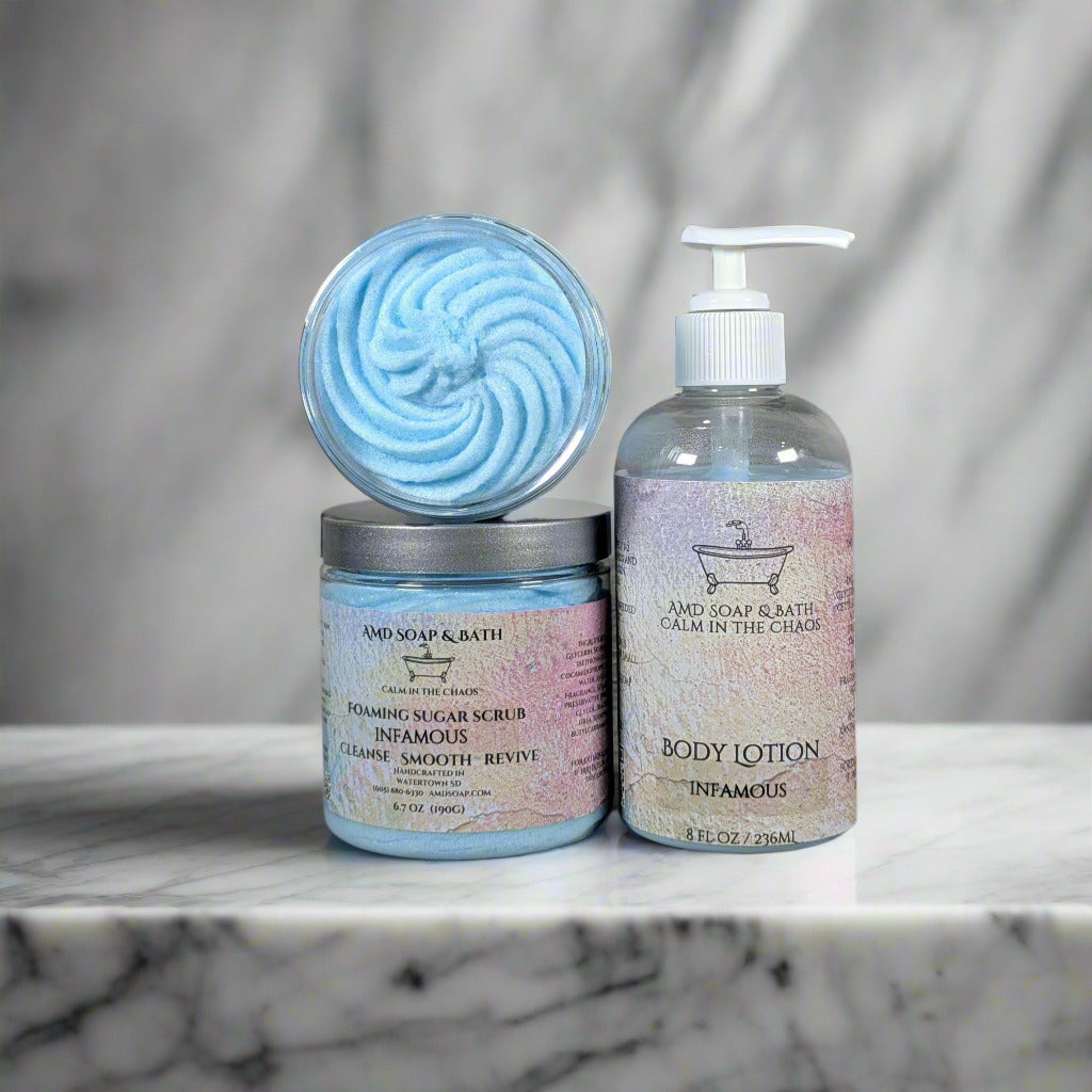 This Foaming Sugar Scrub and Body Lotion Set is a celebration of indulgence and tranquility, ensuring that every moment spent caring for your skin is a journey of pure delight as you reveal smoother and softer skin.